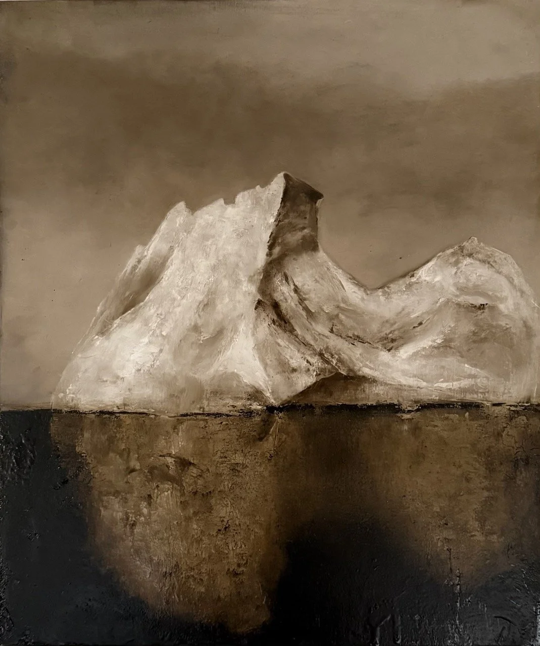 After Ice exchanges the traditional pristine whiteness of icebergs for industrial tar’s lustrous, metallic blacks and smoky tonal browns. The (stabilized) tar's glossy character creates a reflective surface that mimics the glistening of ice, while simultaneously alluding to its decay.